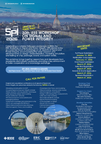 The Technical Program Committee (TPC) is seeking original and unpublished contributions on all aspects of Signal and Power Integrity. All contributions will undergo a rigorous review process, conducted by the TPC. Instructions for manuscript submission are available in the Paper Submission menu.